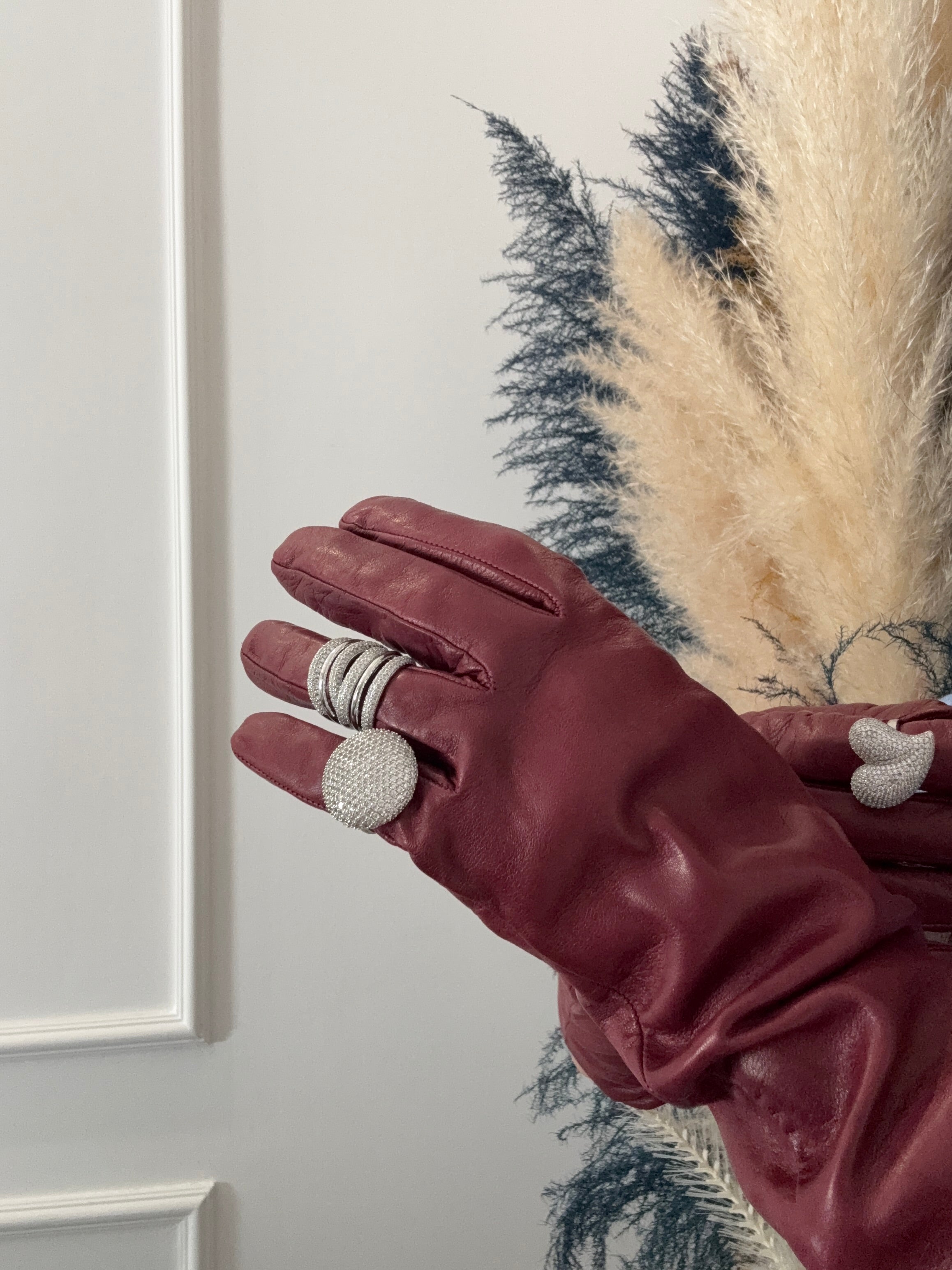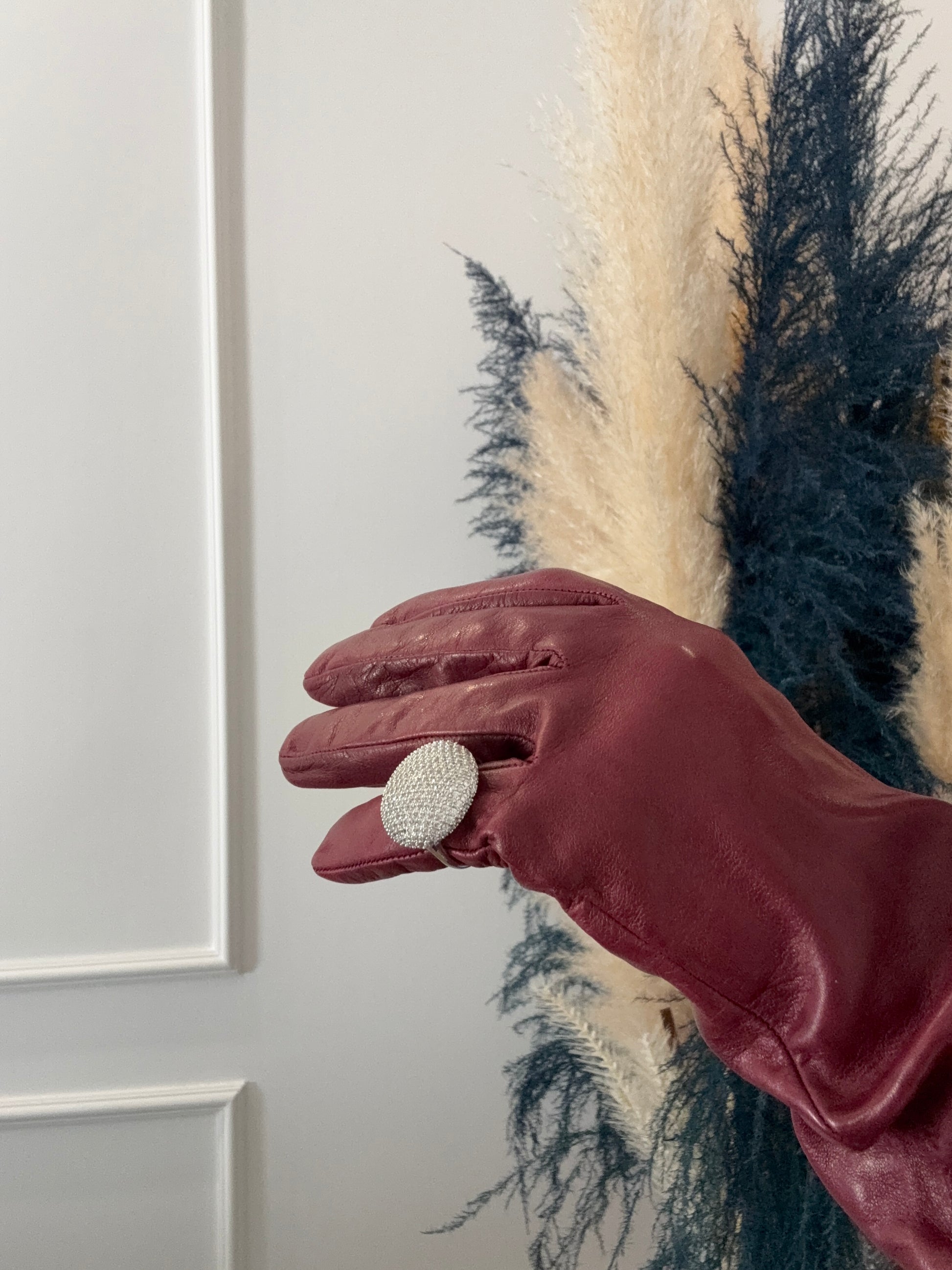 questo anello dalla forma sferica completamente ricoperto di strass.La cupola bombata e luminosa ,effetto pavè crea un gioco di riflessi inteso e continuo,rendendolo perfetto come pezzo centrale di un oufit elefante o come tocco di glamour quotidiano.