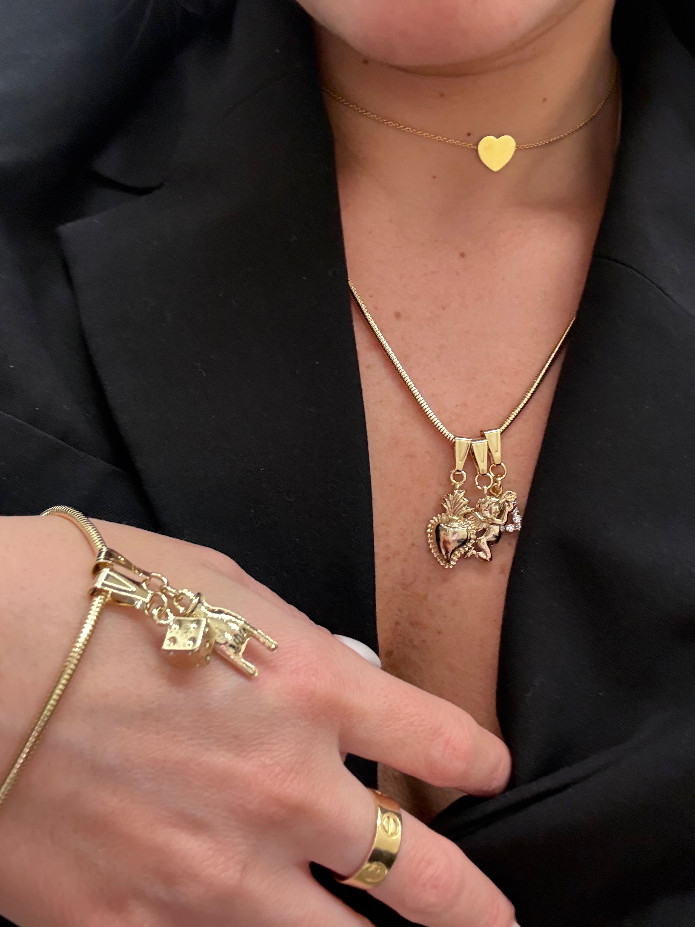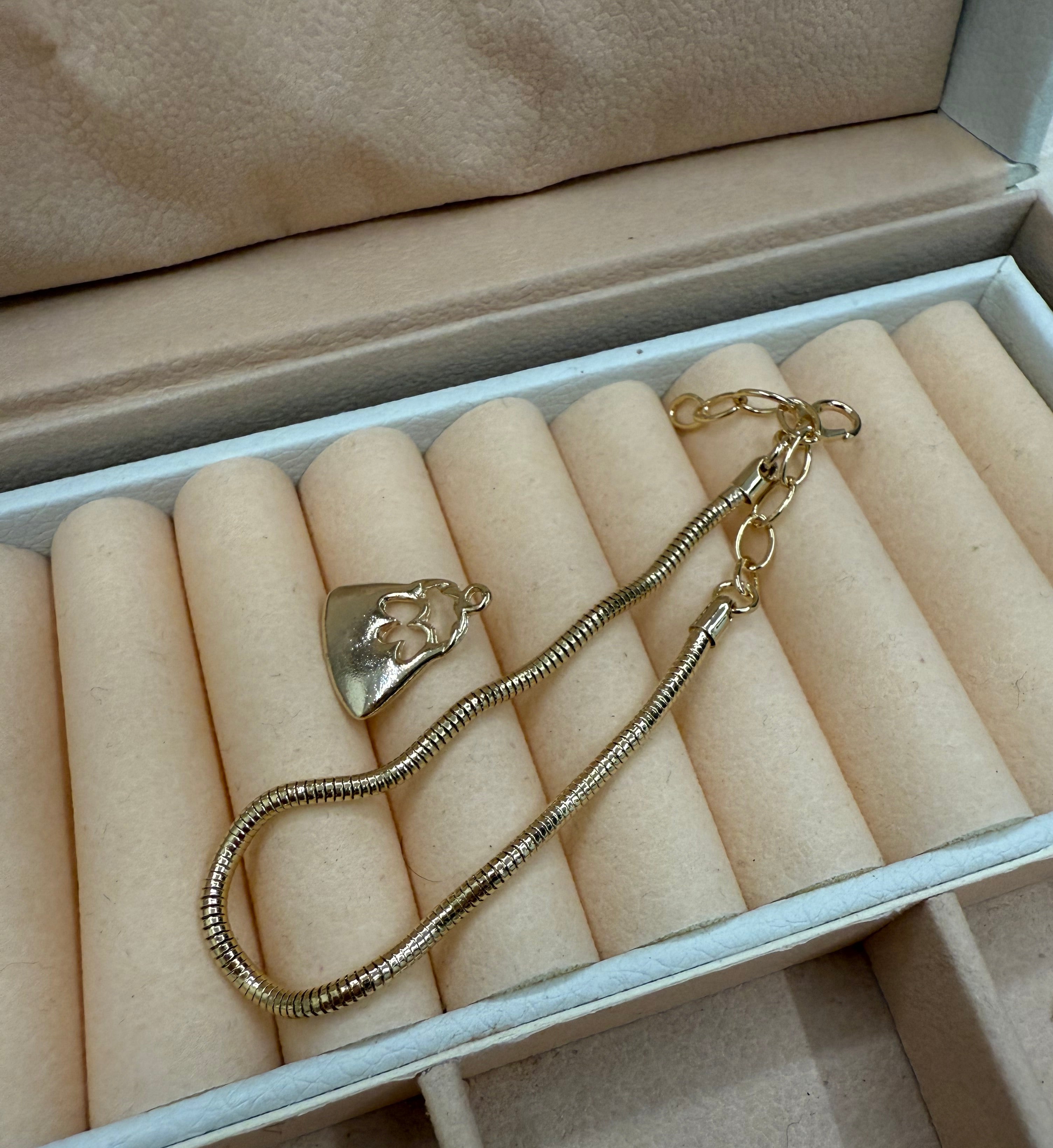 Un raffinato bracciale componibile, caratterizzato da una catena Snake e da una collezione di charm che raccontano momenti, emozioni e ricordi personali. La struttura flessibile ma resistente consente di aggiungere o sostituire facilmente i charm, creando un gioiello unico e in continua evoluzione. Ogni dettaglio è curato con precisione.Perfetto da indossare ogni giorno o da regalare per un’occasione speciale, il bracciale charme diventa un simbolo personale di stile e di storia.