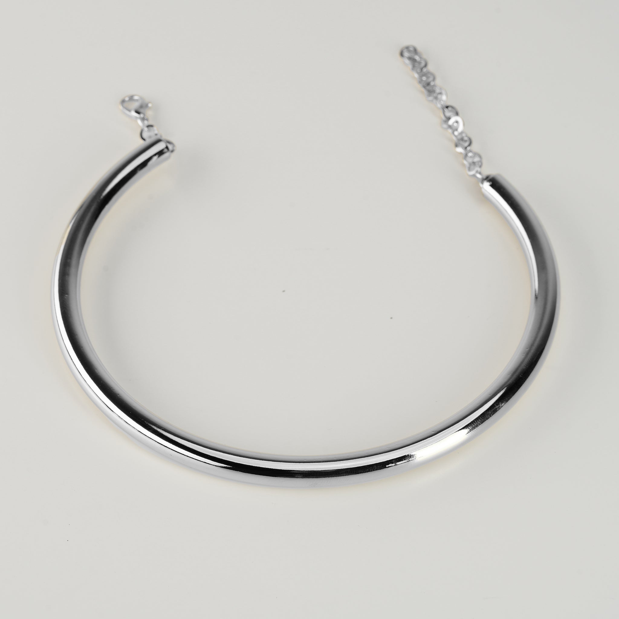 Choker rigido tubolare tipo torque dalla finitura lucida minimalista, placcatura oro 18k o argento.