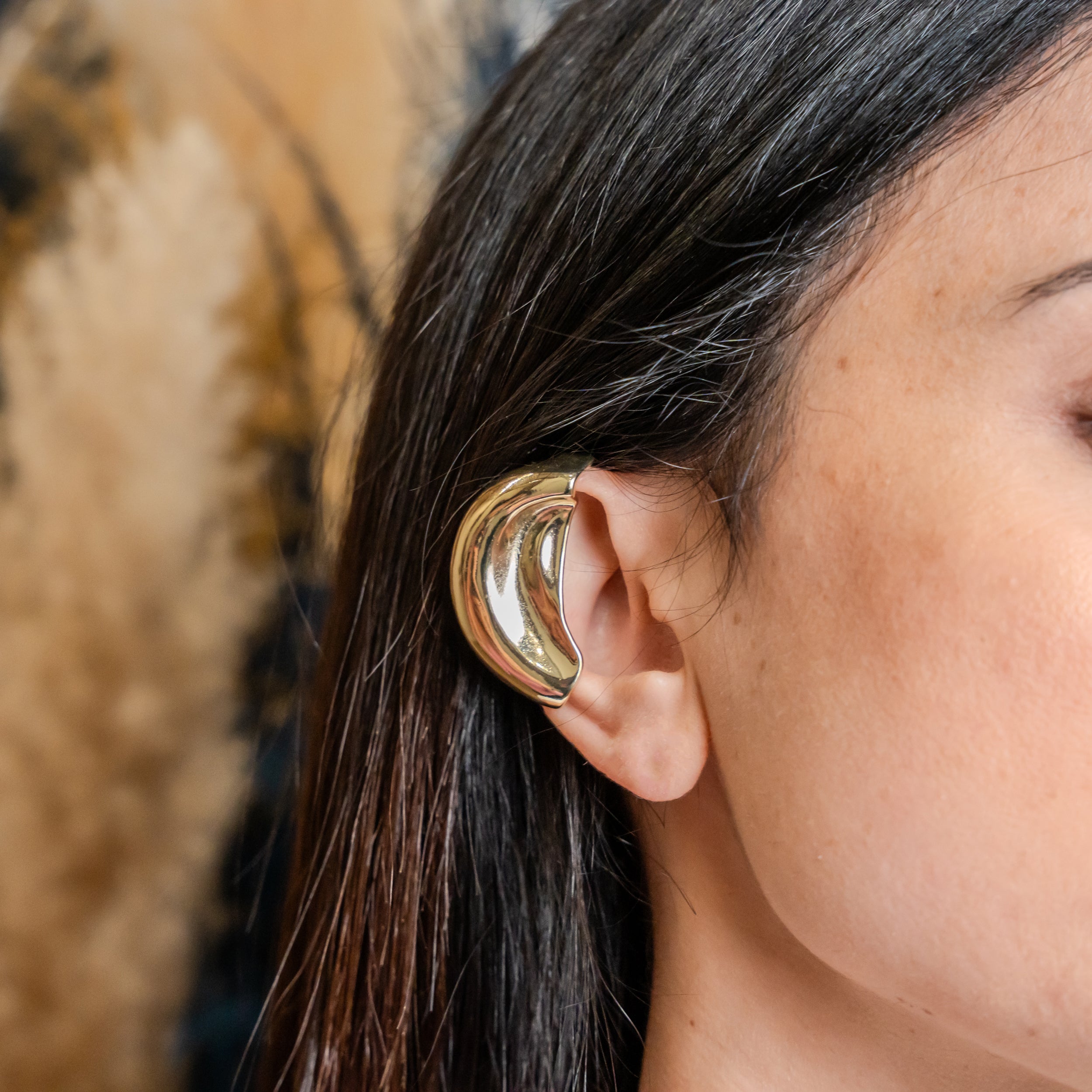 Moderno ear cuff con forma orbitale che abbraccia l'orecchio, finitura lucida, placcatura oro 18k o argento (1 pezzo).