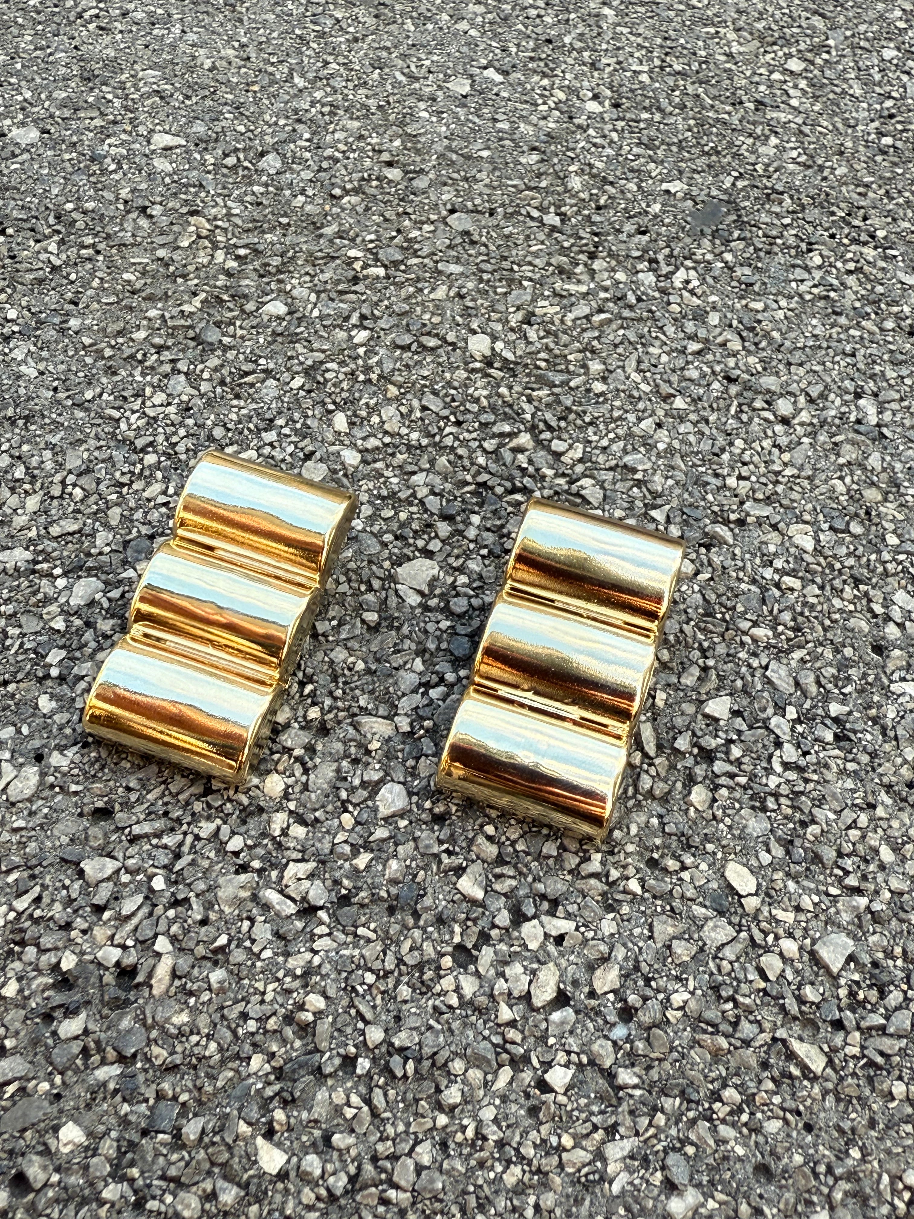Orecchini dalla forma geomatica di 3 cilindri saldati tra loro lavorato a mano in ottone con materiali antiallergici